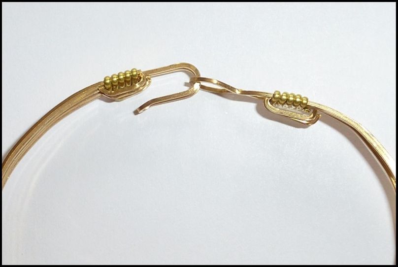 These bracelets are constructed using brass ('Merlin's Gold'), 24-carat gold-plated brass or 'Argentium' (non-tarnishing) sterling silver wire.